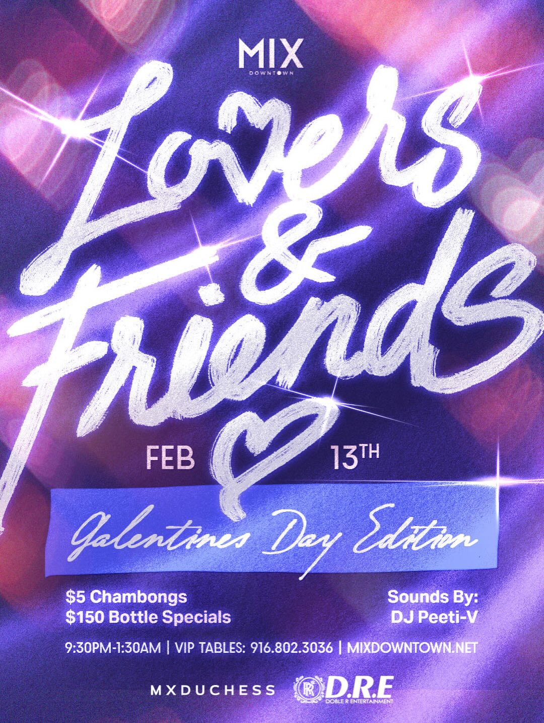 join us on february 13th for our lovers & friends event — $5 chambongs, bottle specials, and @djpeetiv on the decks!